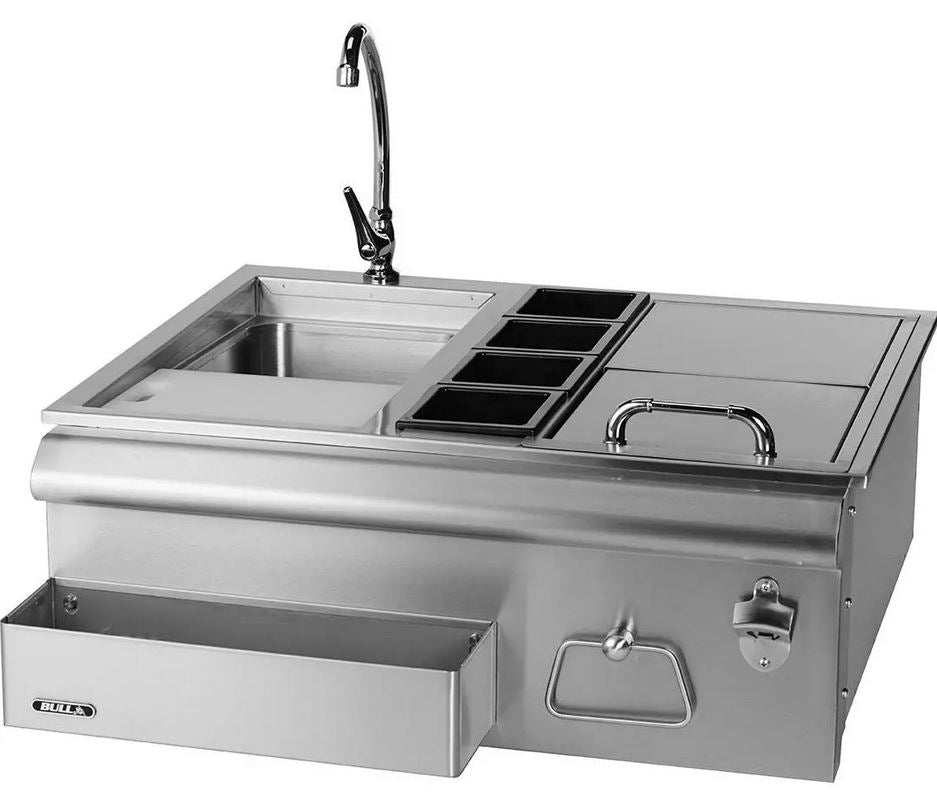 Bull Grills 97623 30-Inch Stainless Steel Slide-In Bar Center W/ Ice Chest & Sink