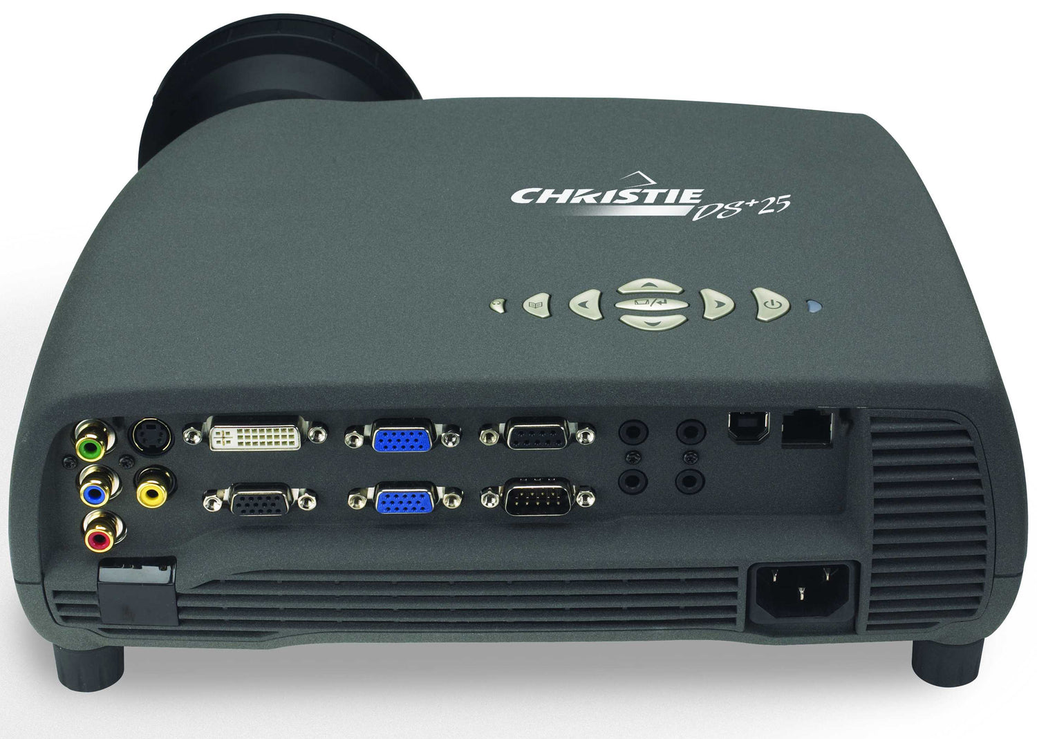 The smallest high resolution DLP projector available today, the Christie DS 25 uses the latest single-chip DLP technology and produces 2500 lumens brightness, 2500:1 contrast ratio with deep black and sharp whites for the best image clarity in its class.