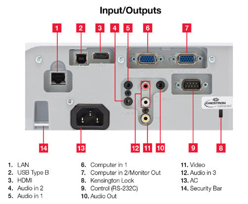 The Hitachi CP-EX251N 3LCD Projector is a fully-featured 2,700 lumens XGA projector with a native resolution of 1024 x 768 pixels. It can be attached to a local area network using an Ethernet cable. Connectivity includes HDMI and VGA inputs for flexibility.