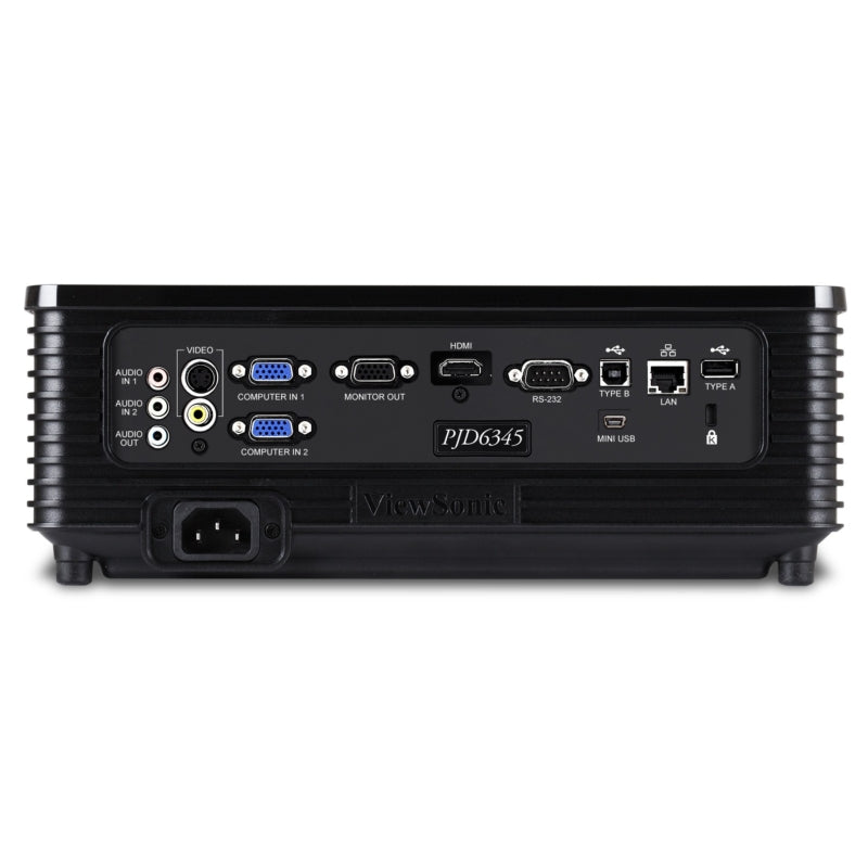 The ViewSonic PJD6345 is an advanced networkable XGA DLP projector that delivers vivid and brilliant images in any setting. With Advanced Connect Technology, ViewSonic offers superior connectivity options for added convenience and flexibility. Present and project content any way you like—display presentations over a wired or wireless LAN, via USB port, directly from a USB flash drive, or from smart phones and tablets using a mobile app. Built with BrilliantColortechnology, this projector produces vibrantcolors, while 3500 ANSI lumens and 15000:1contrast ratio deliver stunning, razor-sharpimages. Equipped with Crestron LAN controller and AMX Device Discovery, thePJD6345 makes it easy for IT admin toremotely control and manage multiple projectorsfrom their workstations and easily integrates into any sizecampus or enterprise. In addition, the PJD6345 comes standard with features including 3D Blu-ray ready HDMI, DynamicEco and integrated speakers.The PJD6345 is the perfect projector for both classroom andcorporate settings where a powerful projection with advanced connectivity is necessary.