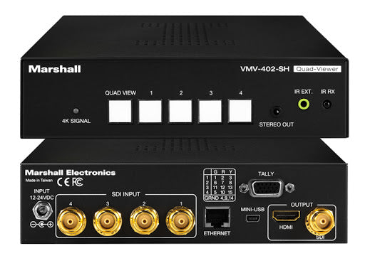 The QVW173-PAC combines two highly efficient Marshall products, the V-LCD173HR and the VMV-402-SH, to provide users with a powerful quad-view display solution at a fraction of the cost of similar quad-view systems on the market.