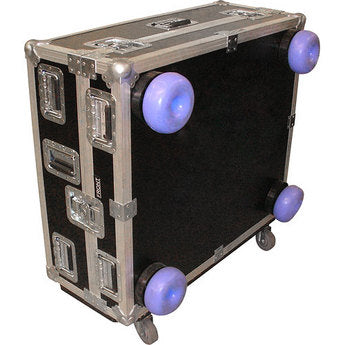 The Sanyo PLCCSE14 Heavy Duty Shipping Case is an ATA style hard 3/8" Black Birch case with 3.0" 4 lb Polyester foam padding. It has a removable lid, recessed spring loaded handles and two padlock hasps. The case has 3.5" rolling casters and skid mates for forklift usage. .