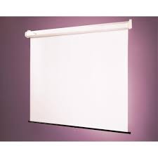 Luma wall/ceiling projection screen. For small to medium sized groups. Spring-roller operated. Housed in pentagonal steel case with a scratch-resistant white polyester finish and matching endcaps. Endcaps form universal hanging brackets for attachment to wall or ceiling.
